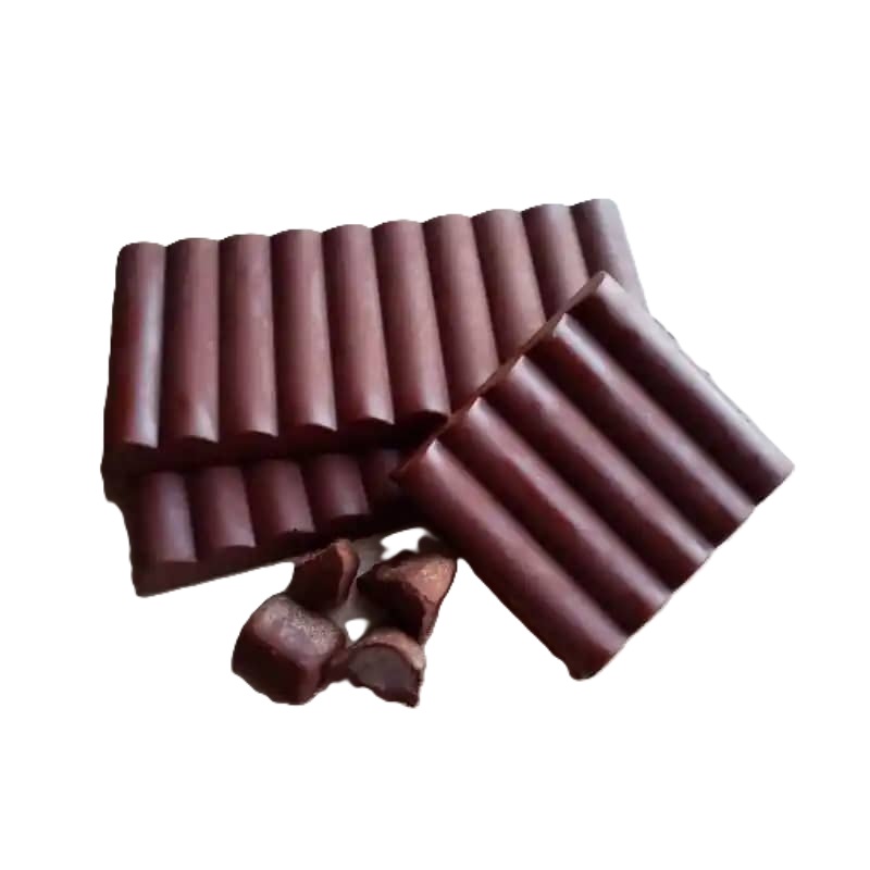 - Color: marrón oscuro, indicador de alto contenido de cacao.