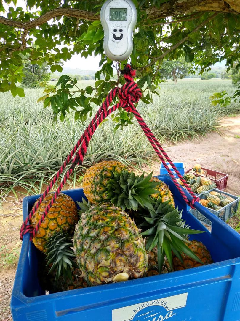 Sugerencias de comercialización (tienda física y online): destaque palabras clave como “piña miel MD-2”, “Golden Sweet”, “piña dorada”, “fruta tropical colombiana”, “calidad exportación” y “piña por kilo/pieza”. Incluya fotos a 45° del corte mostrando color dorado uniforme y textura jugosa. Añada tips de uso (cóctel de frutas, planchas con cerdo/pollo, jugos sin azúcar añadida) y fichas breves de Brix/calibre por lote para compradores profesionales.